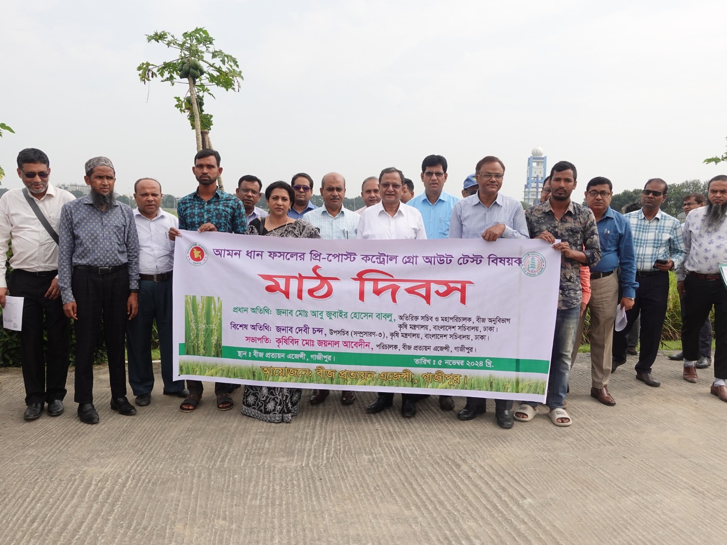 বীজ প্রত্যয়ন এজেন্সীতে ২০২৪-২৫ মৌসুমের আমন ধান ফসলের প্রি-পোস্ট কন্ট্রোল গ্রো-আউট টেস্ট বিষয়ক মাঠ দিবস ০৫ নভেম্বর ২০২৪ খ্রি. তারিখে সংস্থার প্রশাসনিক ভবনের প্রশিক্ষণ হলে অনুষ্ঠিত হয়। জনাব মো: আবু জুবাইর হোসেন বাবলু, অতিরিক্ত সচিব ও মহাপরিচালক, বীজ অনুবিভাগ, কৃষি মন্ত্রণালয় প্রধান অতিথি হিসেবে; জনাব দেবী চন্দ, উপসচিব, সম্প্রসারণ-৩, কৃষি মন্ত্রণালয় বিশেষ অতিথি হিসেবে এবং জনাব মো: জয়নাল আবেদীন, পরিচালক, বীজ প্রত্যয়ন এজেন্সী সভাপতি হিসেবে উপস্থিত ছিলেন। কৃষি মন্ত্রণালয়ের আওতাধীন বিভিন্ন সরকারি ও বেসরকারি বীজ উৎপাদনকারী প্রতিষ্ঠানের প্রতিনিধিবৃন্দ, বীজ প্রত্যয়ন এজেন্সীর সদর দপ্তর, আঞ্চলিক ও জেলা পর্যায়ের কর্মকর্তাবৃন্দ মাঠ দিবসে উপস্থিত ছিলেন।