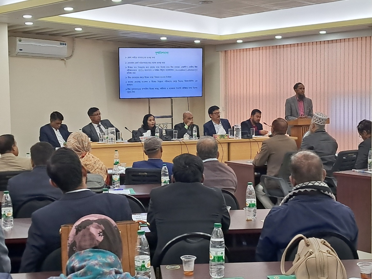 "বীজ প্রত্যয়ন সেবা ও মার্কেট মনিটরিং কার্যক্রম জোরদারকরণের মাধ্যমে মানসম্পন্ন বীজের নিশ্চয়তা" বিষয়ক সেমিনার অদ্য ২১ ডিসেম্বর ২০২৪ খ্রি. তারিখে বীজ প্রত্যয়ন এজেন্সীর প্রশিক্ষণ হল রুমে অনুষ্ঠিত হয়। সেমিনারে জনাব মোসাম্মৎ জোহরা খাতুন, যুগ্মসচিব ও মহাপরিচালক, বীজ অনুবিভাগ, কৃষি মন্ত্রণালয় প্রধান অতিথি হিসেবে উপস্থিত ছিলেন। জনাব মো: জয়নাল আবেদীন, পরিচালক, বীজ প্রত্যয়ন এজেন্সী সভাপতি হিসেবে এবং মুক্ত আলোচনার সঞ্চালক হিসেবে দায়িত্ব পালন করেন। সেমিনারে জনাব মোহাম্মদ শামছুর রহমান খান, উপপরিচালক (জাত পরীক্ষা), এসসিএ মূল প্রবন্ধ উপস্থাপন করেন। কৃষি মন্ত্রণালয়ের আওতাধীন বিভিন্ন সরকারি ও বেসরকারি বীজ উৎপাদনকারী প্রতিষ্ঠানের প্রতিনিধিবৃন্দ, কৃষি বিশ্ববিদ্যালয়ের প্রতিনিধিবৃন্দ, ডিএই, নাটা এর প্রতিনিধিবৃন্দ, বীজ প্রত্যয়ন এজেন্সীর সদর দপ্তর, আঞ্চলিক ও জেলা পর্যায়ের কর্মকর্তাবৃন্দ সেমিনারে উপস্থিত থেকে বীজের প্রত্যয়ন সেবা ও মার্কেট মনিটরিং কার্যক্রম বিষয়ে গুরুত্বপূর্ণ মতামত ব্যক্ত করেন।