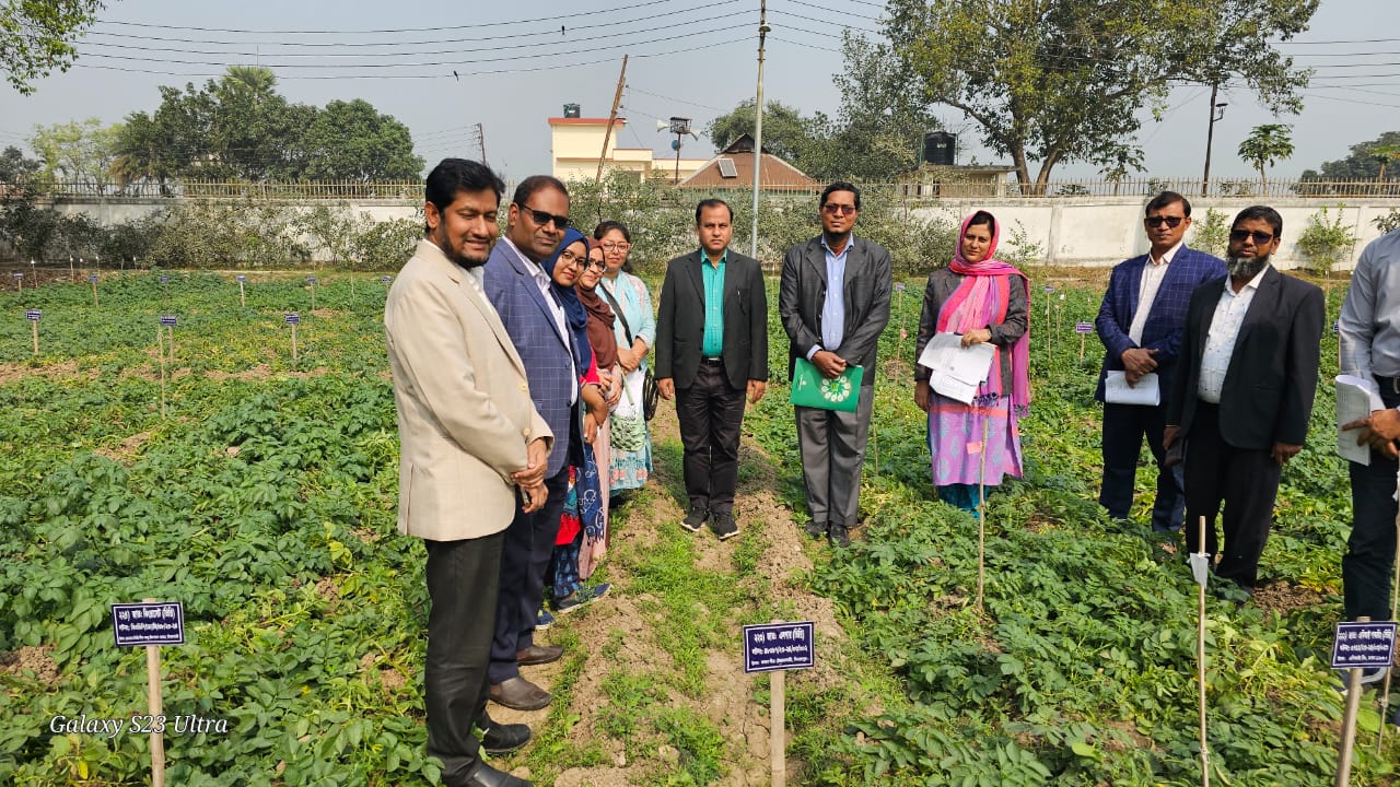 বীজ প্রত্যয়ন এজেন্সীতে ২০২৪-২৫ মৌসুমের আলু বীজ ফসলের প্রি-পোস্ট কন্ট্রোল গ্রো-আউট টেস্ট’ বিষয়ক মাঠ দিবস আজ ০৬ ফেব্রুয়ারি ২০২৫ খ্রি. তারিখে সংস্থার প্রশাসনিক ভবনের প্রশিক্ষণ রুমে অনুষ্ঠিত হয়। মাঠ দিবসে প্রধান অতিথি হিসেবে ড. মো: আব্দুল্লাহ ইউছুফ আখন্দ, মহাপরিচালক, বাংলাদেশ কৃষি গবেষণা ইনস্টিটিউট, গাজীপুর মহোদয়; বিশেষ অতিথি হিসেবে জনাব মো: আব্দুর রহিম, মহাপরিচালক, জাতীয় কৃষি প্রশিক্ষণ একাডেমী, গাজীপুর মহোদয় উপস্থিত ছিলেন। জনাব মো: জয়নাল আবেদীন, পরিচালক, বীজ প্রত্যয়ন এজেন্সী, গাজীপুর মহোদয় কারিগরি সেশন পরিচালনা এবং সভাপতির দায়িত্ব পালন করেন। মাঠ দিবস অনুষ্ঠানে সরকারি ও বেসরকারি আলু বীজ উৎপাদনকারী প্রতিষ্ঠানের প্রতিনিধিবৃন্দ, বিজ্ঞানীবৃন্দ, কৃষি সম্প্রসারণ অধিদপ্তররের কর্মকর্তাবৃন্দ, বীজ প্রত্যয়ন এজেন্সীর সদর দপ্তর, আঞ্চলিক ও জেলা কার্যালয়ের কর্মকর্তাবৃন্দ উপস্থিত হয়ে বীজ প্রত্যয়ন এজেন্সীর কন্ট্রোল খামারে উৎপাদিত প্রাক:ভিত্তি, ভিত্তি ও প্রত্যায়িত শ্রেণির বীজের কৌলিক বিশুদ্ধতা মুল্যায়ন করেন।
